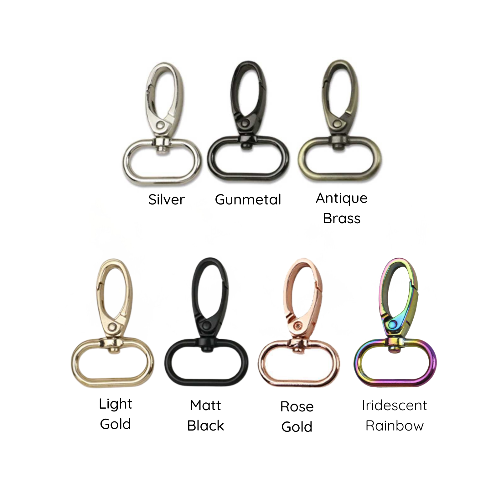Available in four classic colour finishes — light gold, silver and gunmetal — making it easy to coordinate with your other bag-making hardware.