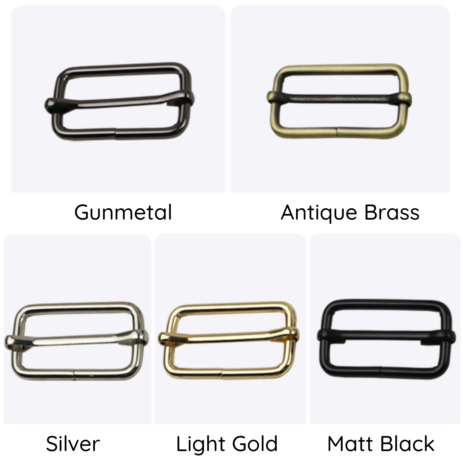 Available in four classic colour finishes — light gold, silver, antique brass and gunmetal — making it easy to coordinate with your other bag-making hardware.