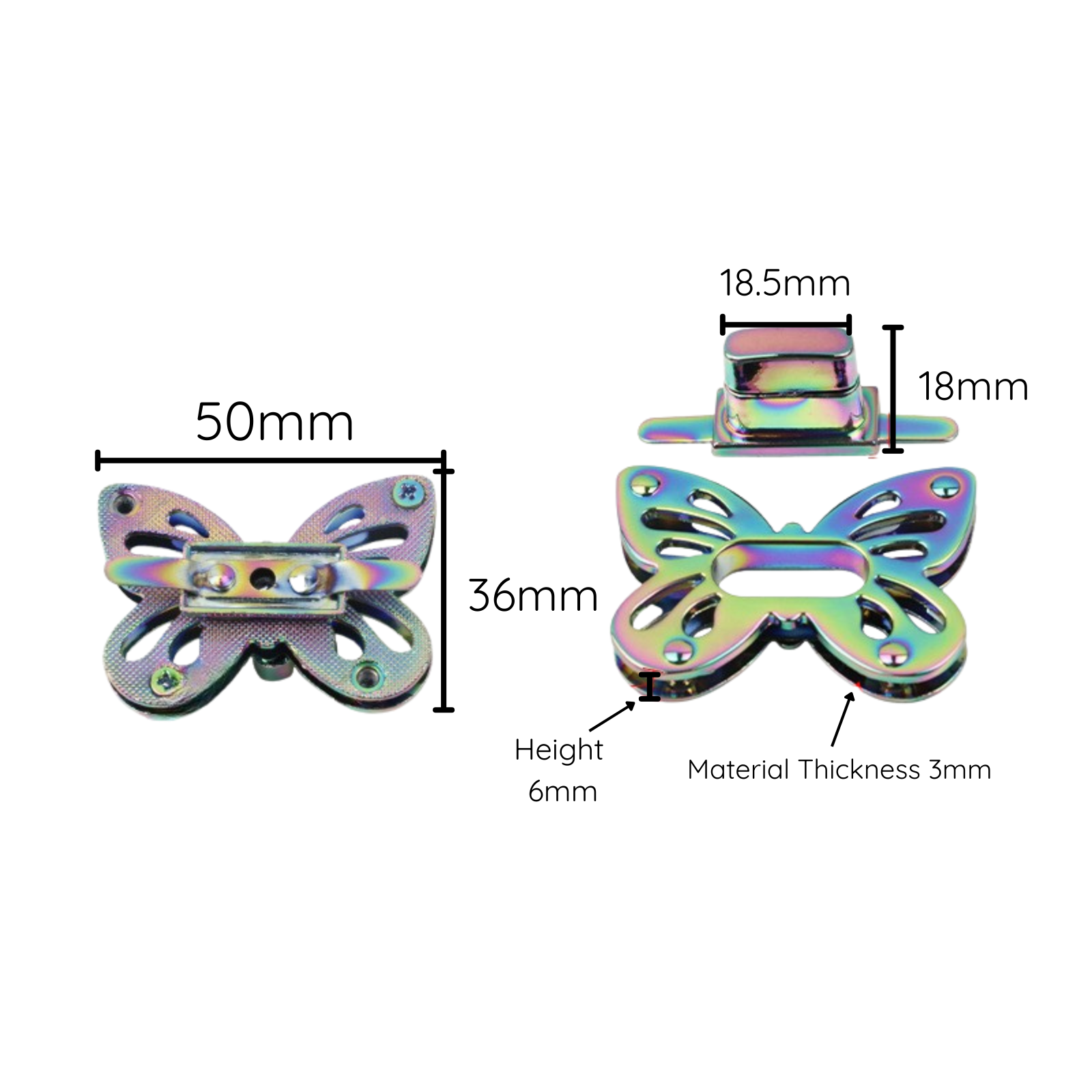 50mm Butterfly Twist Lock (Style 1) - Iridescent Rainbow